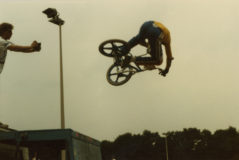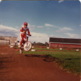 Craziest track obstacle EVER. Just a drop off, boom, straight down. First straight at the Flemington Oval. 1979. For more BMX craziness pick up my book,...