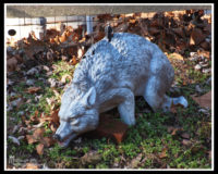 Prowl A stone fox prowls the front yard of a home on the New Hope Canal. New Hope, PA. January 1st 2017 Check it out...