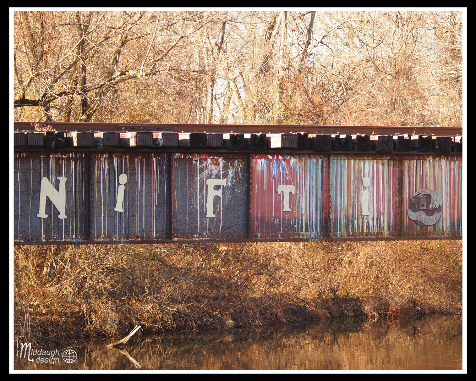 Graffiti on the soon to be re-opened Lambertville to Flemington Rail Line Bridge. Lambertville, NJ DR Canal New Years Day 2017